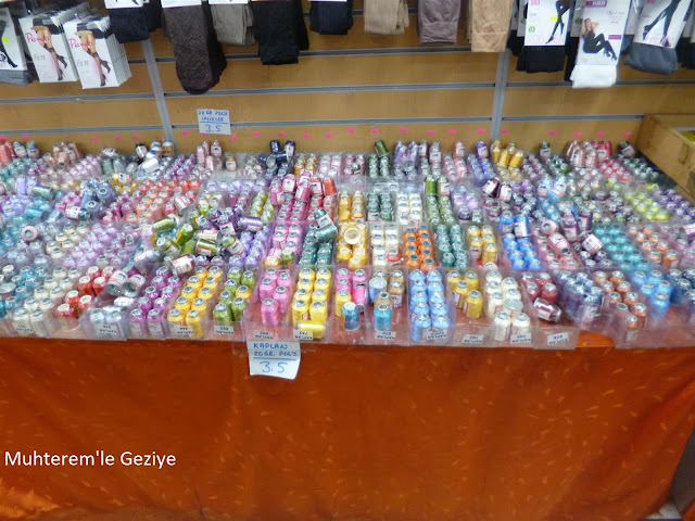 Burası ana girişten sonra bir alt tarafta yer alan kısım, burada çorap çeşitleri ve iplik çeşitleri yer alıyor.